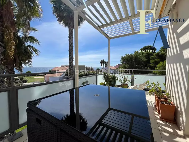 Traversant, calme et baigné de lumière, il offre une vue splendide sur l'étang de Thau, un panorama rare et apaisant au quotidien. Le séjour s'ouvre sur une belle terrasse d'angle de plus de 20 m², idéale pour savourer des instants de détente face au paysage.