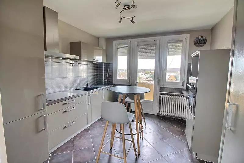 Vous apprécierez une cuisine moderne et équipée, avec accès direct à un balcon agréable — parfait pour prendre un café le matin . Le grand séjour lumineux offre une jolie vue dégagée sur l'extérieur et prolonge l'espace de vie. Deux chambres avec placards, offre confort et rangement.