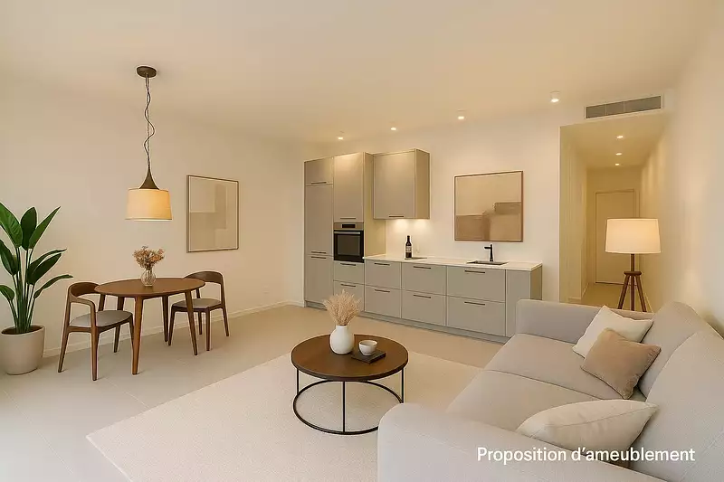 À proximité immédiate du tramway (ligne 2 vers l’aéroport et le Port), des commerces, restaurants et plages, cet appartement est parfait pour une résidence principale comme pour un pied-à-terre.