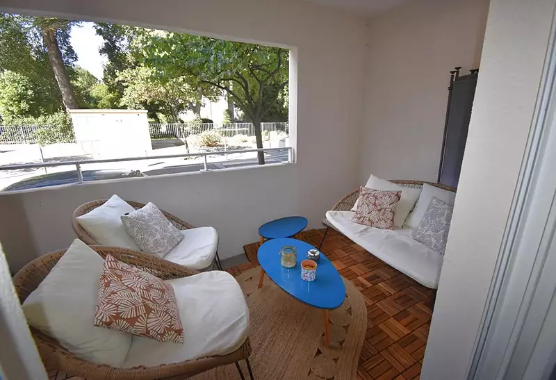 Je vous propose à la vente un agréable appartement cosy situé dans une résidence sécurisée de standing en RDC surélevé. Vous y trouverez un hall d'entrée, une cuisine équipée qui ouvre sur un salon lumineux, deux chambres, et une buanderie.