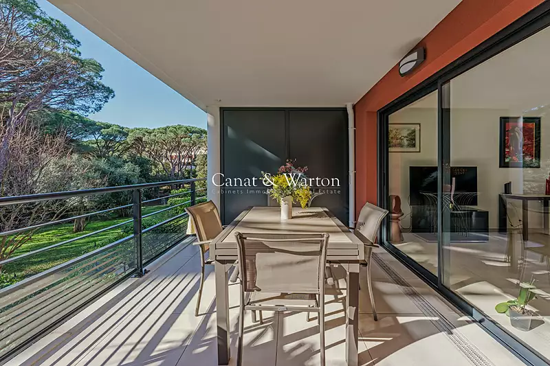 Dans une résidence récente de très grand standing, appartement 3 pièces en pignon triple exposition, 2 terrasses, magnifique environnement, vue sur les greens et la verdure. Espace spa privatif, Jacuzzi sauna et piscine intérieure chauffée. Garage Copropriété de 11 lots (Pas de procédure en cours). Charges annuelles : 3360 euros.
