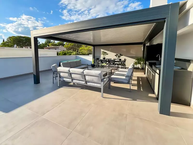 À l'extérieur, profitez d'une grande terrasse équipée d'une pergola bioclimatique, véritable pièce de vie supplémentaire, idéale pour vos moments de détente.
