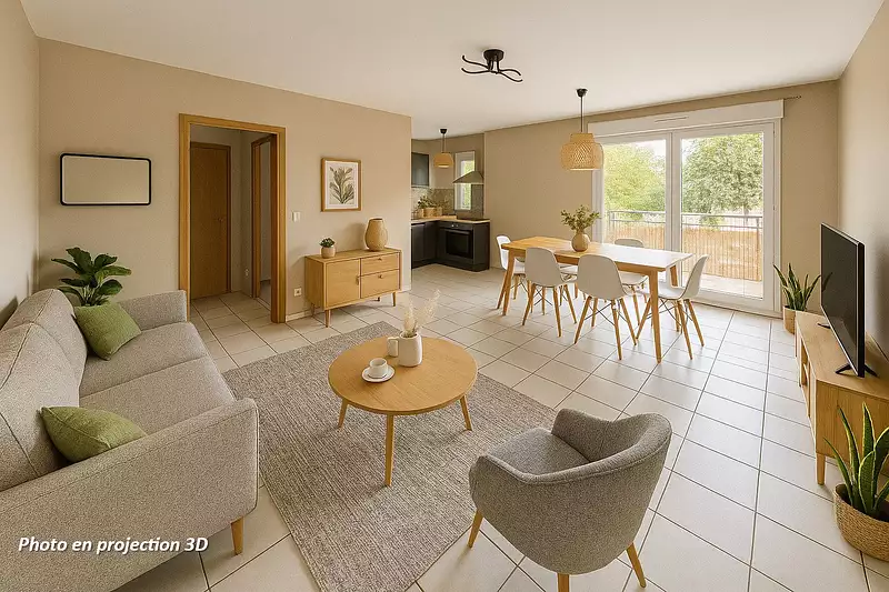 | 70 m² - 3 pièces - 2 chambres | Rez-de-chaussée |