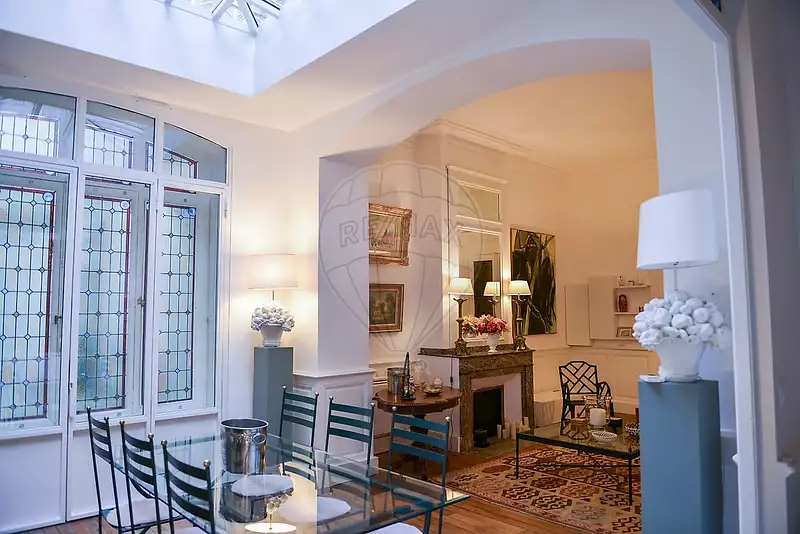 Proposant plus de 70m2, ce grand T2 a conservé, mis en valeur par la rénovation, ses parquets, boiseries, cheminées, vitraux, verrière et menuiseries qui en font un bien d'exception.