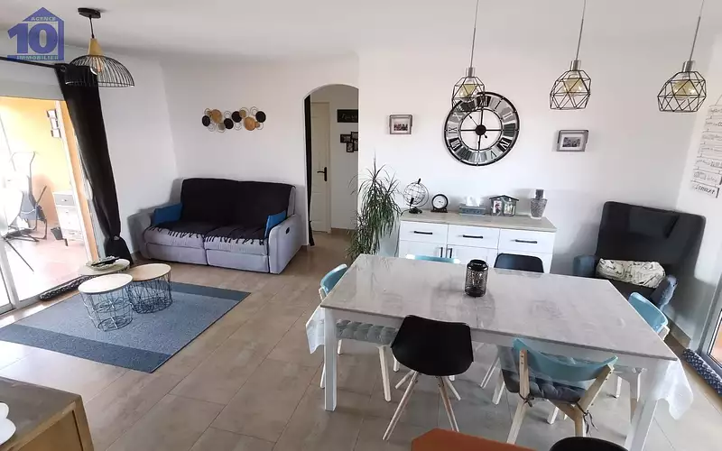 À Valras-Plage, dans une résidence récente située dans le secteur calme du stade et du tennis, découvrez ce superbe T3 traversant au 2ème et dernier étage sans vis-à-vis. Il offre une grande pièce de vie lumineuse avec cuisine très bien équipée et fenêtre, deux chambres avec placards, une salle de bains soignée, entièrement faïencée et un WC suspendu indépendant. Les deux terrasses de 11 m² et 14 m², exposées idéalement, sont équipées de vitrages rétractables permettant une ouverture totale. Celle de 14 m² a été aménagée en véritable salon d'appoint avec canapé d'angle et télévision, ajoutant un espace de vie confortable. La climatisation réversible est installée dans chaque pièce. Parking privé et possibilité de garage complètent ce bien rare, à quelques minutes à pied des plages, des commerces et du marché.