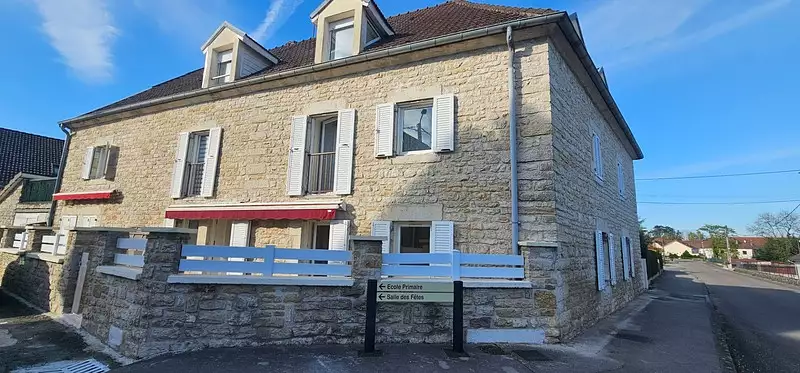Situé dans une belle maison en pierre divisée en plusieurs logements, cet appartement de plain-pied offre un cadre de vie paisible et confortable, idéal pour les personnes souhaitant vivre sans escalier, à proximité des commodités.