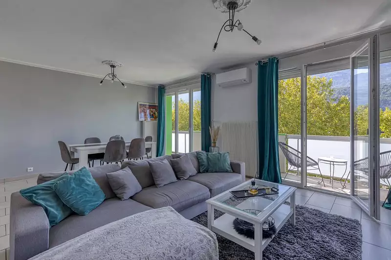 Celui du séjour-salle à manger et d'une chambre face au Vercors et celui de la cuisine face à Belledonne.