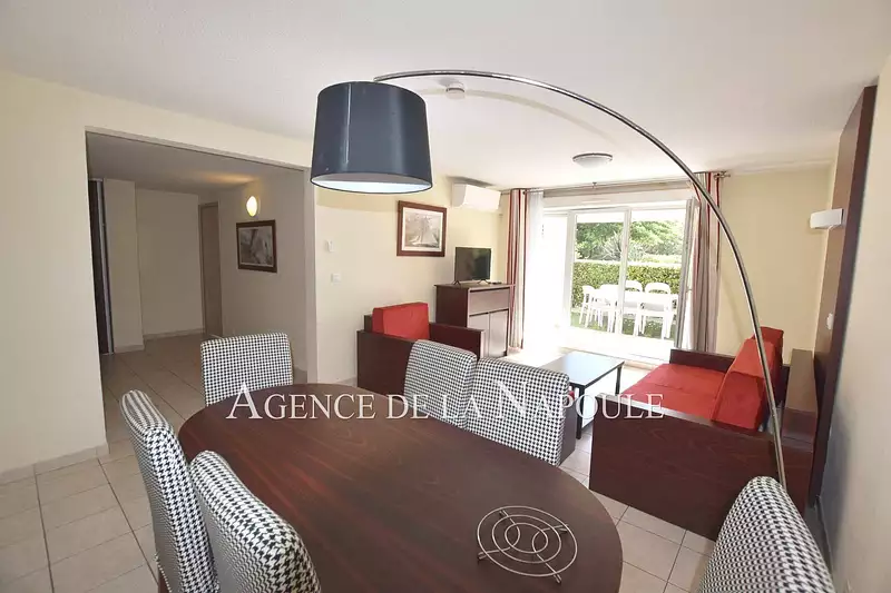 L'appartement, vendu meublé, comprend une large entrée avec placard, un séjour / salle à manger, un coin cuisine toute équipée, deux chambres avec placard dont une avec salle de bains, une salle d'eau et un wc séparé.Parking privatif