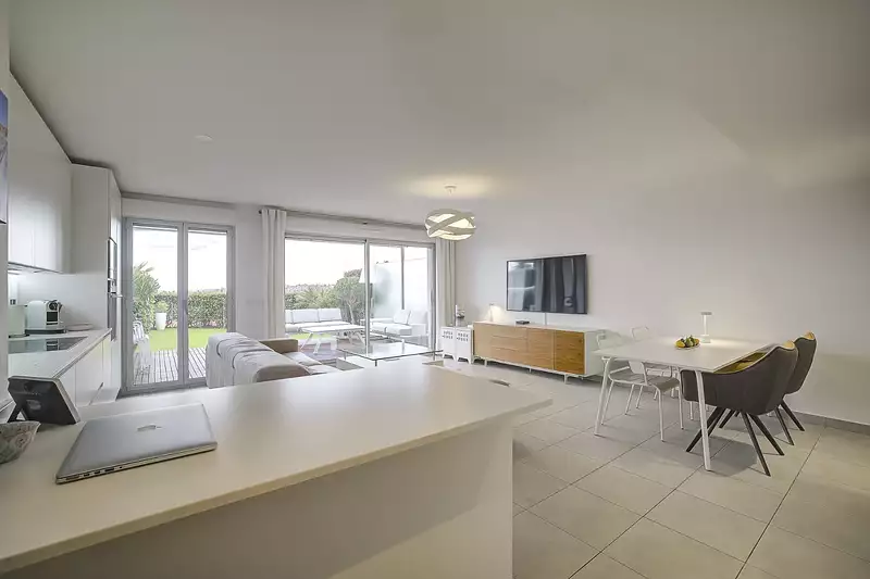 Situé dans une résidence sécurisée et de standing avec piscine. Superb 3 pièces de 71M2, avec terrasse et jardin privatif de 46M2 exposé sud/ouest avec un aperçu mer. L'appartement est entièrement équipé au calme absolut et lumineux composé d'un grand séjour avec cuisine ouverte donnant sur le jardin. Deux chambres avec placards, une salle de bains et un WC indépendant. Garage fermé en sous sol. A visiter sans plus tarder Pour visiter et vous accompagner dans votre projet, contactez Grégory NELKEN 06 95 42 28 19 Surface CARREZ : 71 m² Prix de vente 585,000 € Prix TTC et Honoraires à charge vendeur TTC