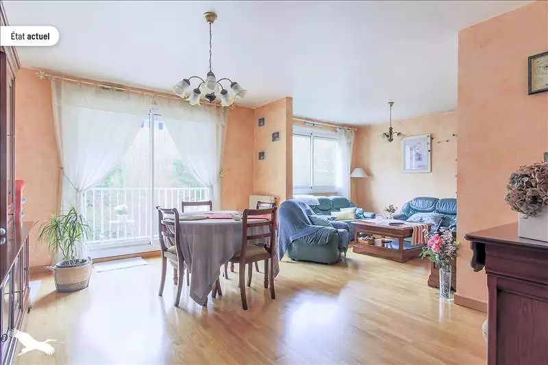 Dans secteur recherché de Poissy, au calme, résidence sécurisée, proximité écoles et commerces, un appartement T4, aux beaux volumes, vous proposant, séjour double, cuisine équipée, deux chambres, salle de bains, wc indépendant, dégagement, nombreux rangements. Un balcon agréable sans vis à vis. Un box et une cave complète le bien. Proposition d'aménagement virtuel non contractuelle en dernière photo.