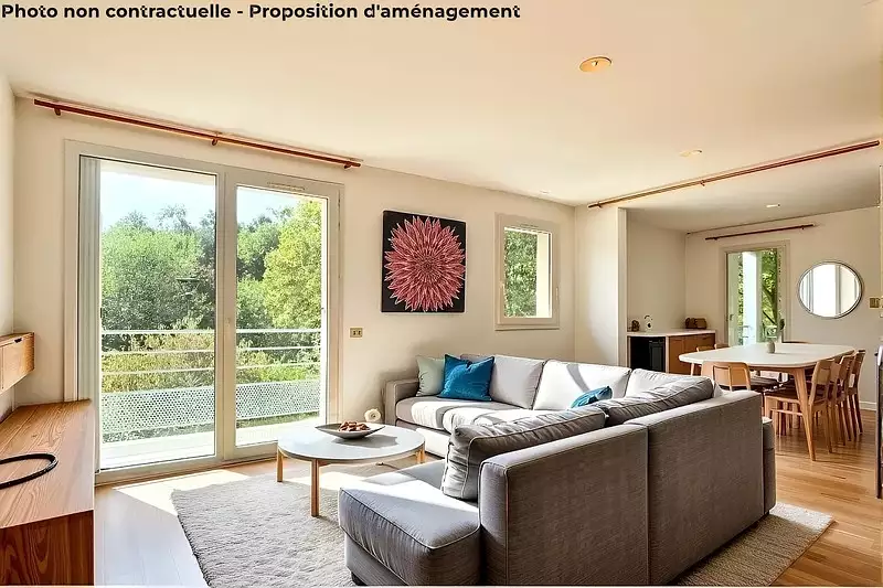 Grand séjour/salon exposé plein sud, avec accès au balcon et vue dégagée.