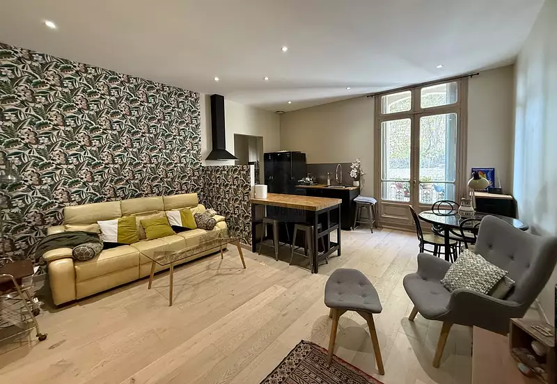 Au sein d'un superbe immeuble bourgeois dont les façades et les parties communes ont été refaites récemment, au 1 er étage, charmant appartement T3 entièrement rénové dans un esprit résolument contemporain. Belle pièce à vivre avec cuisine équipée et arrière cuisine, 2 chambres avec dressing, salle d'eau, toilettes indépendants. Climatisation réversible, isolation, double vitrage. Proximité de la gare SNCF, centre ville, ses commerces et animations Les plages et golf à 15 minutes