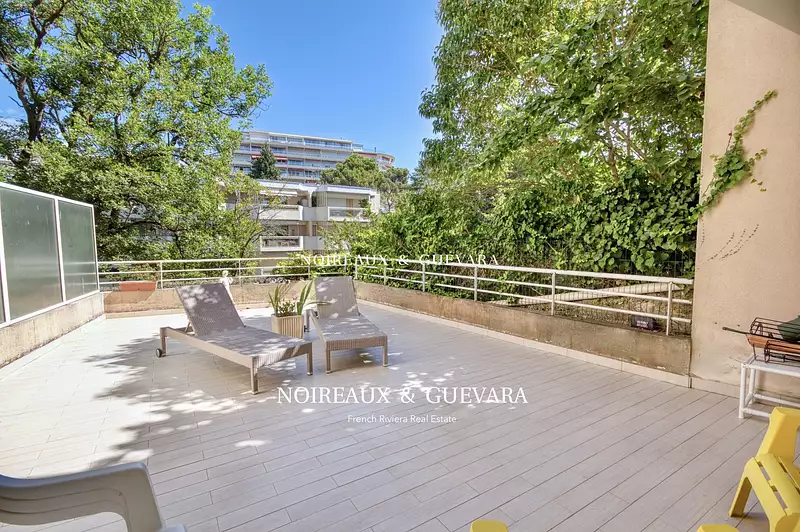 Résidence récente offrant de superbes terrasses. Nous vous proposons cet appartment de 3 pièces en rez-de-jardin, comprenant un hall d'entrée, un séjour avec cuisine américaine et de larges baies vitrées s'ouvrant sur un charmant jardin privatif. Les 2 chambres bénéficient chacunes d'une salle d'eau privative, wc d'invité, seconde grande terrasse ombragée disposant d'une superbe vue sur les collines environnantes (68m² d'extérieur en tout).