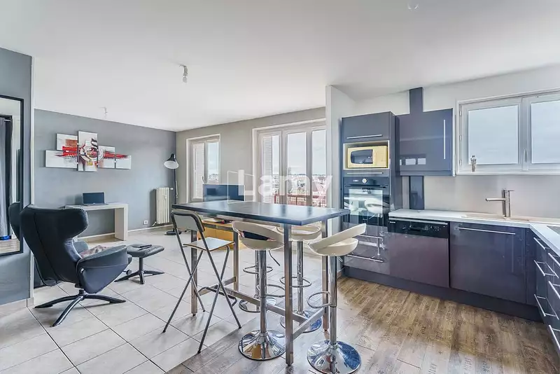 PARC DE LA COLOMBIERE - WILSON Dans une résidence parfaitement entretenue, très agréable appartement type 5 de 72 m² proposant séjour avec cuisine ouverte meublée et équipée, vue dégagée, trois chambres et cave. Bel état général. 2256 euros CA / 77 lots