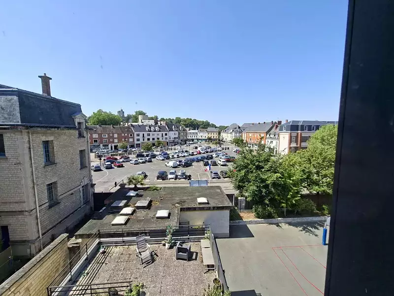 En plein centre ville de gisors une vue imprenable sur la place du marché!!! venez découvrir en hyper centre de gisors cette appartement duplex au dernier étage d'une résidence sécurisée avec ascenseur qui vous offre une entrée, une chambre avec pièce dressing, une salle de douche avec wc et un séjour avec cuisine. a l'étage 2 chambres et une salle de douche avec vasque. chauffage électrique, tae charges de copro 1350 par an -