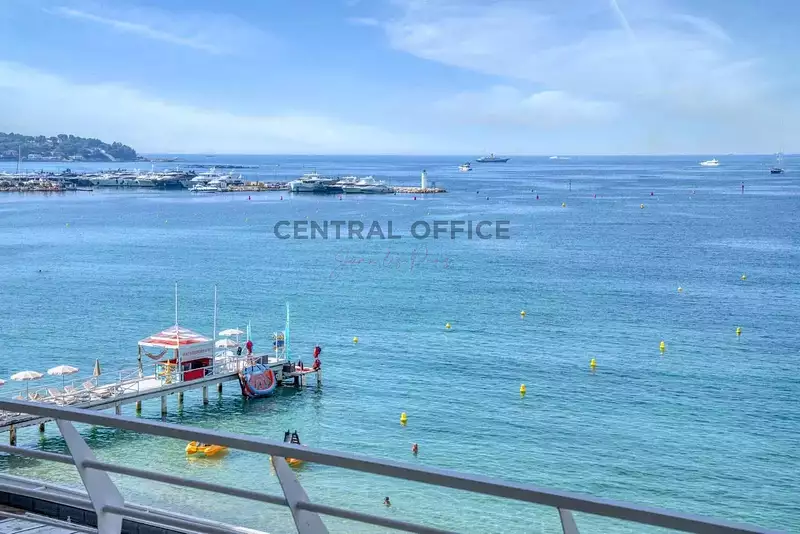 Situé en plein coeur de ville de Juan-Les-Pins dans une résidence les pieds dans l'eau avec sa plage privée.