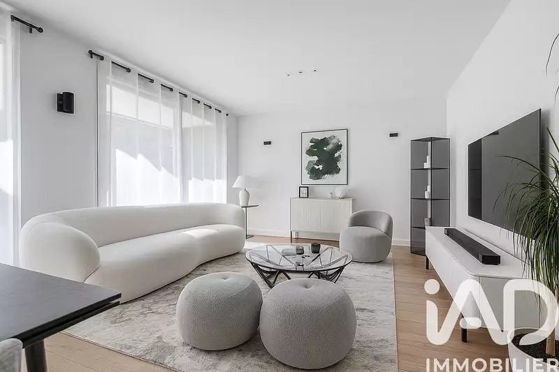iad France - Perrine MALINVAUD vous propose: Situé dans le quartier recherché du Val d'Or à Saint-Cloud, à proximité de la piscine, du théâtre des 3 Pierrots, et à quelques minutes à pied de la Gare, un appartement traversant et lumineux doté d'une belle terrasse donnant sur la verdure, le tout offrant des prestations de qualité, au second étage d'un immeuble au calme et bien entretenu, avec gardien. Il se compose d'un salon, salle à manger, avec un coin bureau, le tout donnant de plain-pied sur une terrasse en angle, une cuisine, une salle de bains, deux chambres bénéficiant également d'un balcon. L'appartement a été entièrement rénové en 2017 et les fenêtres changées en 2023. Le couloir est aménagé en placards, dressing et espace buanderie. Une cave complète ce bien. La chaudière de l'immeuble à condensation date de 2021. Possibilité d'acquérir une place de parking au sous-sol, non comprise dans cette annonce.