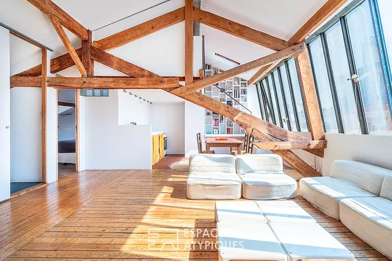Niché au calme entre l'Église et la Gare de Saint-Denis, à deux pas du Canal, cet ancien atelier de 72,48 m² au sol (51,15 m² Carrez), en destination d'habitation, propose un volume unique à réinterpréter selon les envies. Situé au 2ème étage sans ascenseur, accessible par un escalier privatif, une porte coulissante ouvre sur un vaste séjour traversant baigné de lumière. L'espace de vie de 34 m² est agrémenté d'une cuisine ouverte et coiffé d'une verrière spectaculaire orientée plein Sud, culminant à 3,65 mètres de hauteur. A l'arrière, une chambre mansardée, une salle de bains et un WC complètent le niveau principal. Un escalier sur mesure, intégrant une bibliothèque et un coin bureau, mène à une mezzanine de 8 m², parfaite pour un couchage d'appoint ou un espace de lecture. Bois, acier, pierre brute : la richesse des matériaux confère à ce lieu une véritable personnalité, offrant une base de caractère à ceux qui sauront révéler tout son potentiel. Un lieu de vie unique, pour les amateurs d'espaces inspirants. Bien soumis au statut de la copropriété. Transports : Gare de Saint-Denis à 200 mètres CLASSE ENERGIE : G / CLASSE CLIMAT : C Montant moyen estimé des dépenses annuelles d'énergie pour un usage standard, indexées aux années 2021, 2022, 2023 : entre 2690 euros et 3680 euros (abonnement compris). Les informations sur les risques auxquels ce bien est exposé sont disponibles sur le site Géorisques : https://www.georisques.gouv.fr Contact: Grégory 06 60 65 34 66 RSAC: 822 473 120 Paris Copropriété de 4 lots - dont 4 lots habitation. (Pas de procédure en cours). Charges annuelles : 558 euros. Gregory Brasier (EI) Agent Commercial - Numéro RSAC : 822 473 120 - Paris.