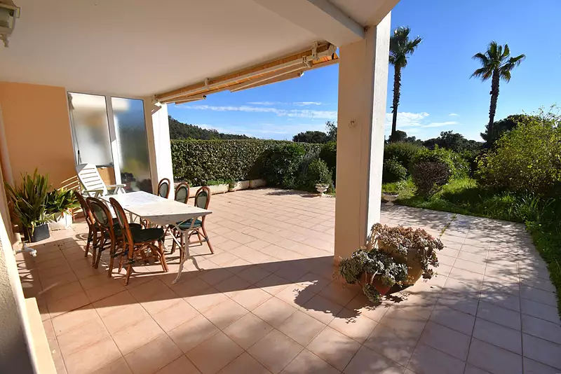 EXCLUSIVITE ! Quartier Boulouris, dans une résidence de standing sécurisée, très agréable 3 pièces de 72 m² composé d'une entrée, une cuisine ouverte sur le séjour, deux chambres dont une avec terrasse, une salle de bains avec douche et un WC indépendant. La pièce principale a un accès direct sur une vaste terrasse prolongée d'un agréable jardin avec une vue dégagée jusqu'à la mer. Votre agence Millésime Immobilier Boulouris vous propose cet appartement au calme et proche des commodités. Lumineux grâce à une triple exposition, ce T3 est équipé de la climatisation et complété par un garage fermé et une cave. Nb de lots : 76. Charges 2000 euros/an. Copropriété de 76 lots (Pas de procédure en cours). Charges annuelles : 2000 euros.