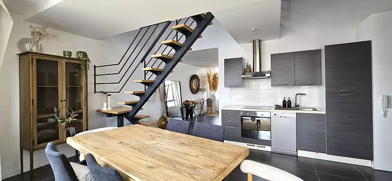 Magnifique appartement T2 en duplex de 72.98 m² avec balcon et parking privatif. Idéalement situé dans une petite copropriété sécurisée, il vous séduira par sa luminosité et sa qualité de rénovation. Très bel espace de vie avec salon - séjour, grande cuisine équipée avec coin repas et accès balcon. A l'étage ; grande salle de bain refaite à neuf et espace bureau. Coup de coeur au rendez-vous ! Copropriété de 15 lots - dont 7 lots habitation. (Pas de procédure en cours). Charges annuelles : 660 euros.