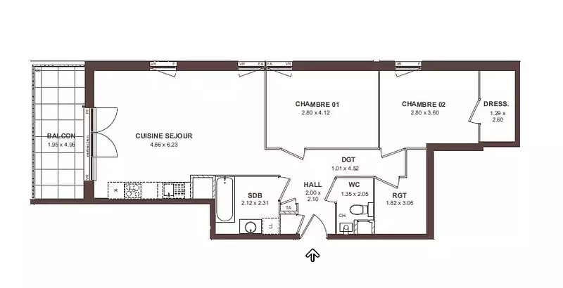 | 73,12 m² - 3 pièces - 2 chambres | Étage 1/2 avec ascenseur |