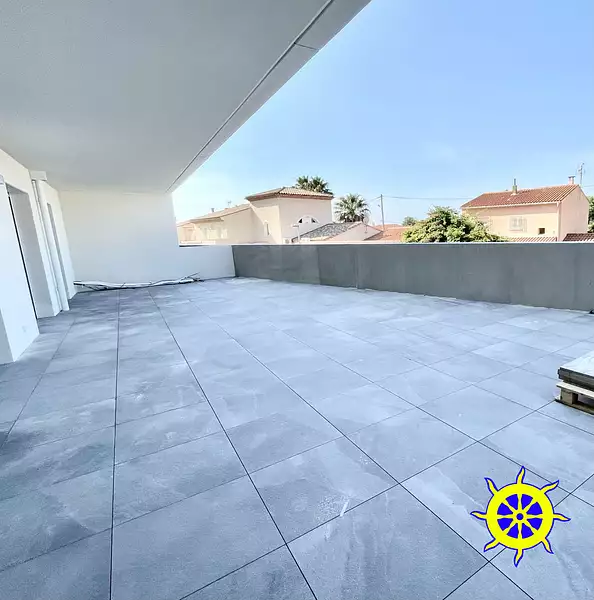 Au 1er étage de la résidence neuve ROSE MARINE, appartement type 4 de 78m2 livrée avec une une terrasse non moins grande 78m2 également! Séjour / cuisine de 25m2 et dégagement distribue un cellier, une salle d'eau / wc, 3 chambres dont une avec sa salle d'eau / wc privative. Toutes les pièces principales sont climatisées et communiquent sur la terrasse. Box privé pour la voiture dans la résidence. résidence avec ascenseur. plage à 1km.
