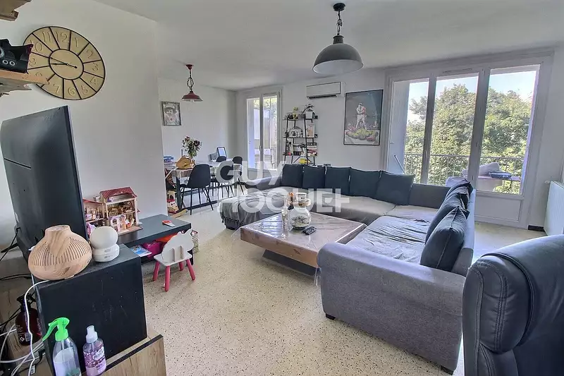 Idéalement situé dans une résidence recherchée, découvrez ce superbe appartement traversant alliant confort, espace et luminosité avec un grand balcon. Il offre un vaste séjour baigné de lumière naturelle, parfait pour accueillir famille et amis dans une atmosphère chaleureuse. Une cuisine équipée et meublée moderne et fonctionnelle, qui répondra à toutes vos attentes en matière de confort et de praticité. Deux chambres avec possibilité de créer une 3e chambre selon vos besoins, bureau, chambre d'enfant, espace invités. Une salle d'eau contemporaine avec douche à l'italienne Stationnement facile : Plusieurs places à disposition dans la résidence ou à proximité immédiate. Atouts supplémentaires : Clim réversible, cave ainsi que chaudière récente . Résidence bien entretenue et sécurisée Proximité des commerces, écoles et transports A découvrir sans tarder !! Copropriété de 10 lots - dont 5 lots habitation. (Pas de procédure en cours). Charges annuelles : 1200 euros.