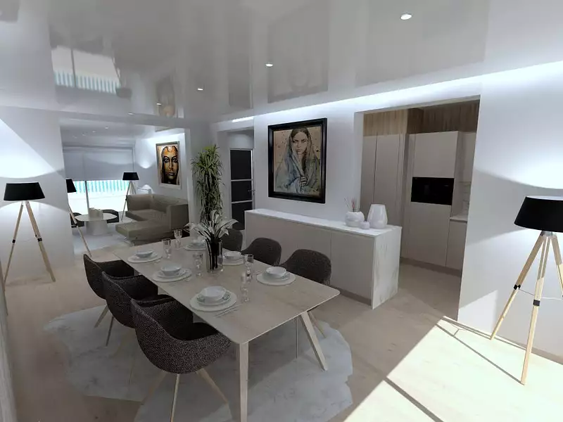 L'appartement se compose d'un bel espace de vie lumineux, de deux chambres confortables, et d'un aménagement pensé pour allier élégance, modernité et praticité.