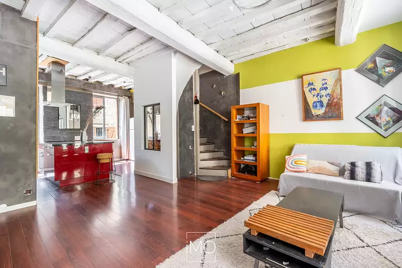 Enfin, sous les toits, une mezzanine complète ce bien. Bien que la hauteur sous plafond y soit réduite, elle peut parfaitement convenir pour un espace de rangement, un coin bureau, un atelier ou encore un coin nuit d’appoint.