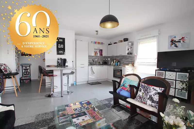 Une cuisine moderne s'ouvre sur un séjour lumineux, créant un espace convivial qui se prolonge sur une terrasse de 10 m2, parfaite pour profiter des beaux jours.