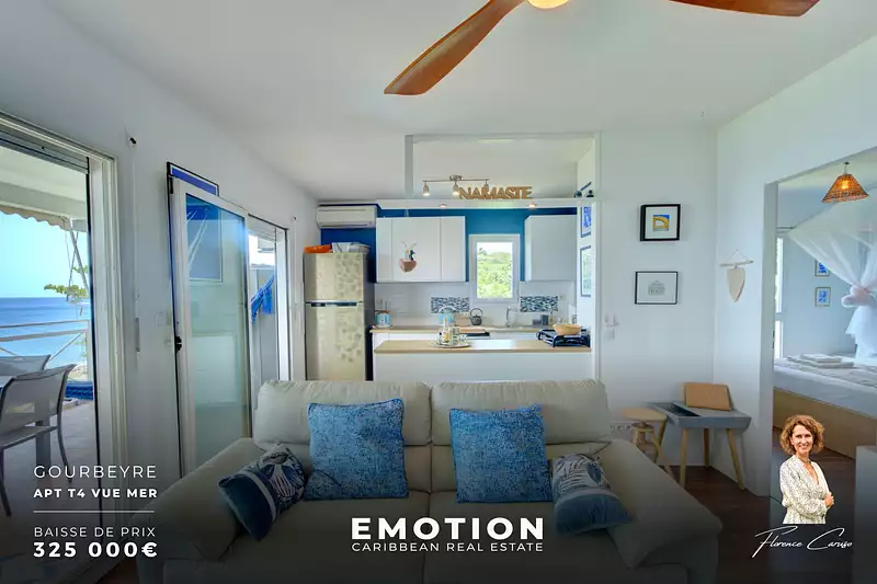 Le Cabinet Emotion Guadeloupe vous propose à la vente, un appartement 3 chambres duplex de 74 m2 dans la ville de Gourbeyre, à la marina de Rivière Sens.
