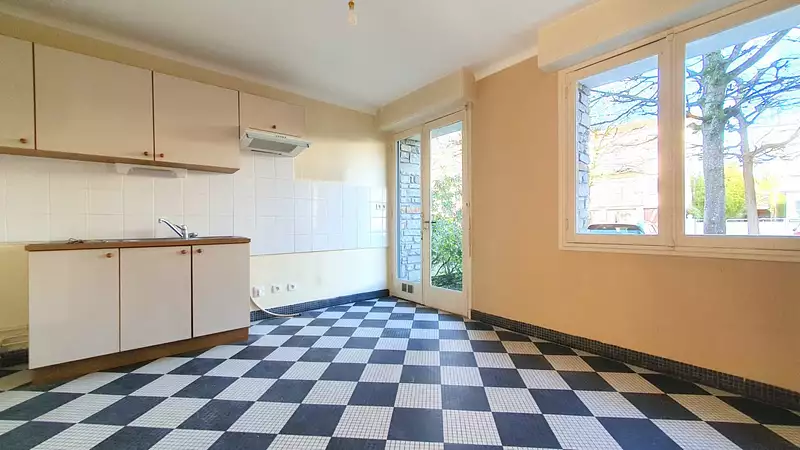 Boulevard des Américains, au rdc d'une copropriété de standing des années 60, T3 de 75 m2 avec entrée, séjour 18 m2 plein sud ouvrant sur petit jardinet privatif, grande cuisine de 16 m2, 2 chambres, salle de bains, wc. Grand grenier et garage individuel. Prévoir remise au goût du jour.