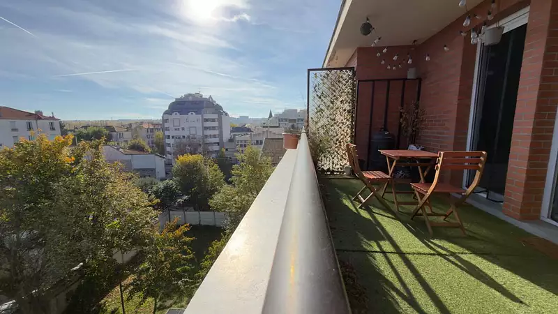 F4 terrasse, balcon, 74.5 m2 proche gare à pied Traversant au dernier étage d'une copropriété récente avec ascenseur comprenant:
