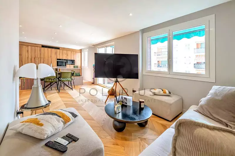 Le spacieux séjour baigné de lumière naturelle s'ouvre sur un balcon privé. idéal pour profiter du soleil méditerranéen et de la vue sur la ville.