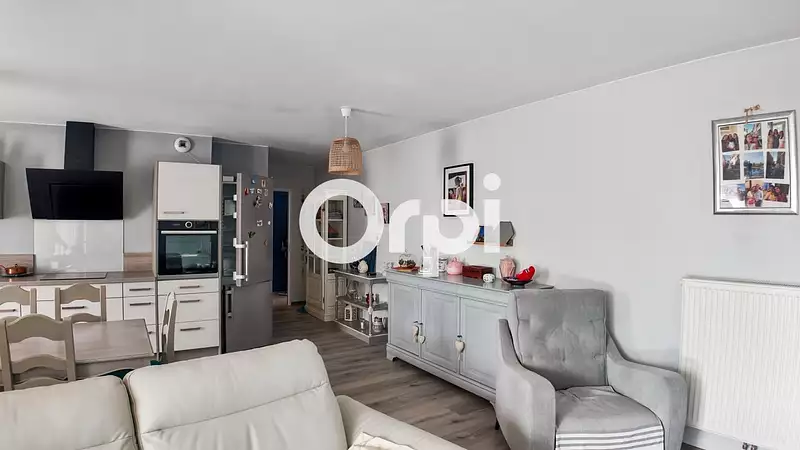 Une grande pièce à vivre lumineuse, salon/séjour ouvert sur une cuisine entièrement équipée, idéale pour partager des moments conviviaux.
