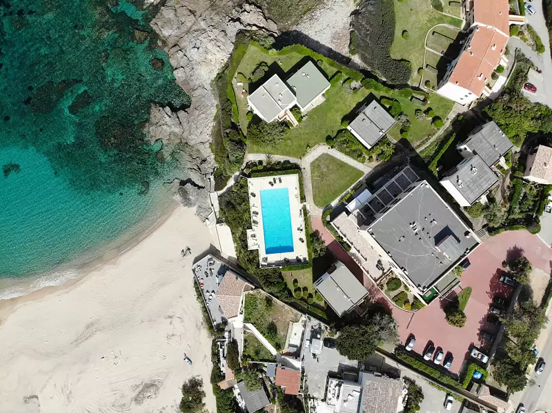 Proche de Tiuccia et de tous les commerces, ce bien jouit d'une situation privilégiée avec sa piscine privée, à quelques pas de la plage, et son jardin est bien entretenu.