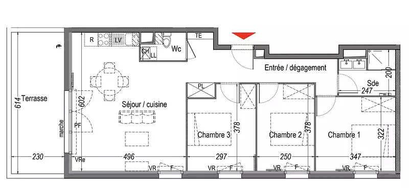 | 75 m² - 4 pièces - 3 chambres | Dernier étage (2ème) |