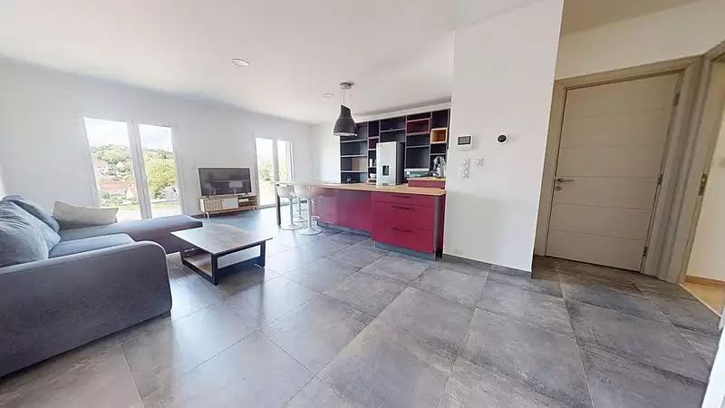 Une cuisine équipée moderne, ouverte sur un séjour agréable