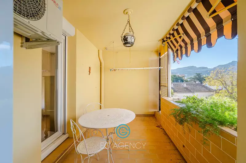 Cet appartement situé au 3 ème étage / 4 se compose d'un séjour climatisé de 20m2 avec cuisine équipée donnant sur un balcon de 7m2 exposé SUD.