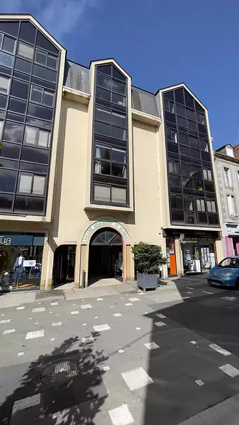 MAYENNE Centre-ville, Dans une copropriété avec ascenseur, bel appartement lumineux comprenant une spacieuse pièce de vie avec cuisine aménagée, trois chambres, une salle d’eau, cave et garage.