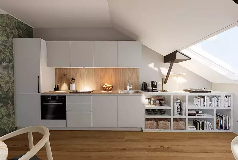 La cuisine ouverte et entièrement équipée vous invite à préparer vos mets dans un cadre fonctionnel et convivial. La lumière naturelle inonde la pièce grâce à de grandes fenêtres et à une disposition ouverte, créant une ambiance chaleureuse et accueillante. Idéal pour des soirées entre amis ou en famille, le salon spacieux permet de s’adapter à vos besoins de détente et de convivialité.