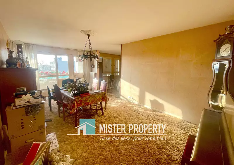Situé au 6e étage avec ascenseur d'un immeuble bien entretenu des années 70, ce spacieux appartement de 75 m² offre un cadre de vie agréable et fonctionnel. Il se compose d'une entrée, d'un grand séjour double lumineux ouvrant sur un balcon, d'une cuisine indépendante, de deux chambres (possibilité Trois), d'une salle d'eau, d'un wc séparé ainsi que d'un cellier pratique. Une place de parking en sous-sol vient compléter ce bien. Idéal pour une famille à la recherche d'espace et de confort, ou pour un investissement locatif de qualité. Travaux à prévoir.