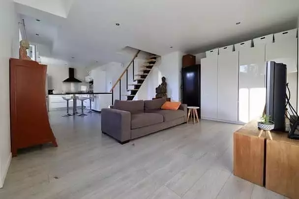 Une partie jour lumineuse composée d'une cuisine et un grand salon, puis un étage avec une partie nuit bénéficiant de 2 chambres spacieuses.