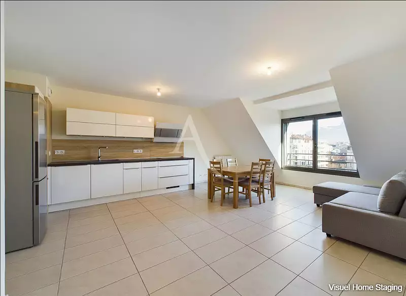 Annecy, Carré Saint François, appartement de 3 pièces de 76m² habitables en dernier étage avec vue sur les montagnes, dans une résidence de standing de 2014, sécurisée , au calme et aux normes PMR. Très bien isolé au niveau thermique et phonique, ce bien est composé d'une très belle pièce à vivre de avec une cuisine équipée. Une chambre de près de 13 m² et une de 15 m², une grande salle d'eau de 7 m² entièrement carrelée, un WC. Un véritable havre de paix au coeur de la ville. Vous bénéficiez d'un jardin de copropriété arboré et au calme. Un garage de 18 m² avec éclairage en sus. Vous disposez de la Fibre. Tout proche de la vieille ville et à proximité des commodités ; transports, marché, commerces, écoles, gare et accès rapide à l'A41 vers Genève et Chambéry/Lyon. Sécurisez votre achat immobilier grâce à notre Garantie Revente. Voir conditions en agence. Une visite ? Contactez Emilie au 06 14 60 25 18 - 04 50 24 45 96 - réf EM-MI6856 Montant estimé des dépenses annuelles en énergie pour un usage standard: entre 590 euros et 860 euros (prix indexés au 01/01/2021). Les informations sur les risques auxquels ce bien est exposé sont disponibles sur le site Géorisques : www.georisques.gouv.fr (5.33 % honoraires TTC à la charge de l'acquéreur.) Copropriété de 300 lots - dont 127 lots habitation. (Pas de procédure en cours). Charges annuelles : 2400 euros. Emilie MORDACQ (EI) Agent Commercial - Numéro RSAC : 904488640 - ANNECY.