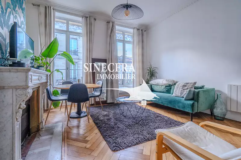 Situé dans une rue calme de l'hypercentre bordelais, à proximité immédiate du quartier des Grands Hommes et du Cours de l'Intendance, cet appartement T3 de 76 m2 occupe le deuxième étage d'un immeuble en pierre. Rénové avec le souci de conserver les éléments anciens, il présente du parquet massif, des moulures et des cheminées qui soulignent son cachet d'époque. L'agencement intérieur comprend un séjour lumineux avec une cuisine ouverte équipée, deux chambres aux volumes confortables ainsi qu'une salle d'eau. Une cave complète cet ensemble qui bénéficie d'une situation privilégiée, permettant de profiter à pied de l'animation culturelle, des commerces et des transports du centre-ville tout en résidant dans un environnement paisible. - Annonce rédigée et publiée par un Agent Mandataire -