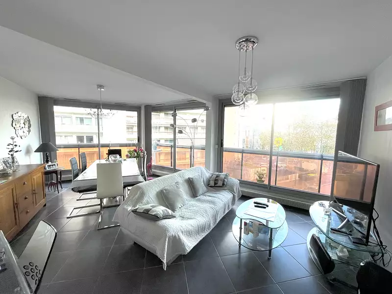 Limite Clermont-Fd - Chamalières : bel appartement de 76 m2, composé d'un séjour de 25m2 et d'une cuisine équipée donnant sur le balcon, de 2 chambres, (dont une grande chambre avec salle d'eau privative), salle de bains, rangements. Garage et cave en sous-sol. Ce bien est situé au 3ème étage avec ascenseur. Garage et une cave en sous-sol. A proximité des commerces, écoles, bus et centre ville.