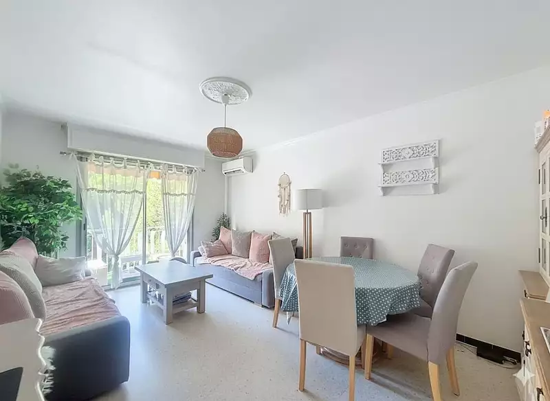 Séjour lumineux ouvrant sur une agréable terrasse de 7 m², idéale pour profiter des beaux jours.