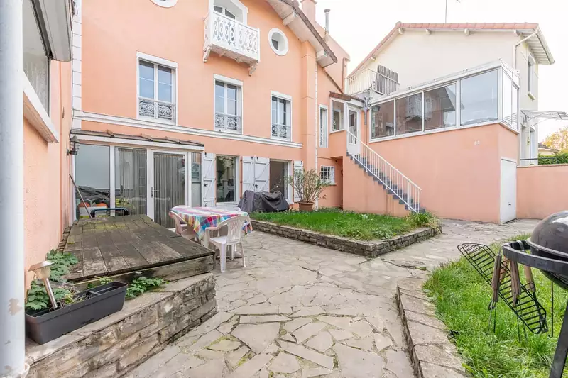 Il se compose d'une entrée ouvrant directement sur une véranda, un joli séjour offrant sa cuisine US aménagée et équipée (37 m²), 3 chambres dont une adjacente, un wc et une salle de bains. La cour est joliment arborée.