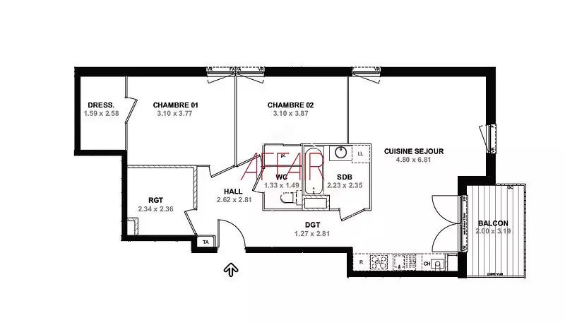 | 76,18 m² - 3 pièces - 2 chambres | Étage 1/2 avec ascenseur |