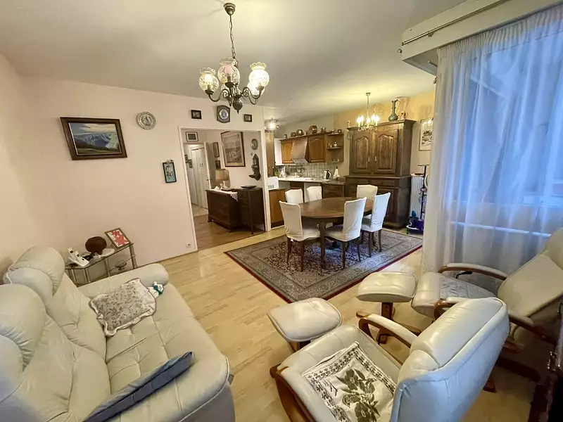 Périgueux centre, dans une résidence avec l'ascenseur, appartement F4 de 76 m2 + loggia de 3,80 m2. Il comprend : une entrée de 10 m2, un séjour, une cuisine ouverte, 3 chambres, salle d'eau, wc. Cellier. Fenêtres PVC double vitrage, volets roulants électriques, chauffage individuel au gaz.. Taxe foncière : 1360 € . Charges de copropriété : 82 € / mois (eau comprise) Bon état général.